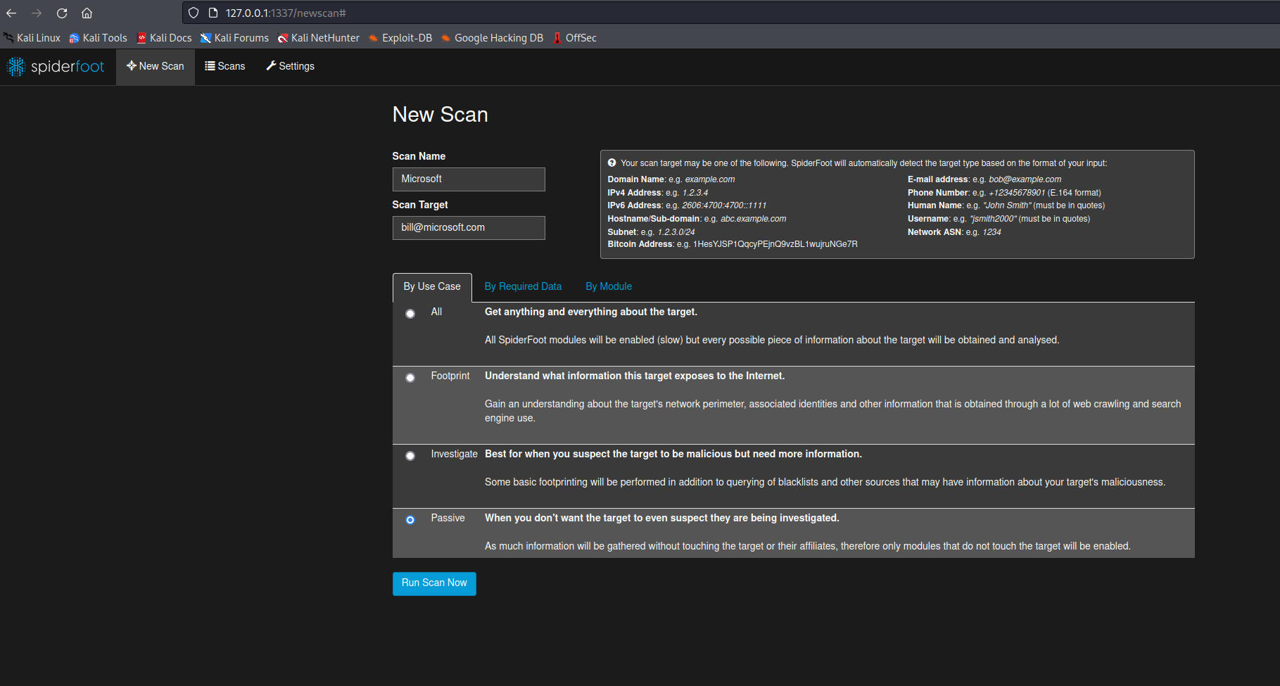 exiftool -r *.doc | egrep -i "Author|Creator|Email|Producer|Template" | sort -uSpiderfoot(Automated OSINT)